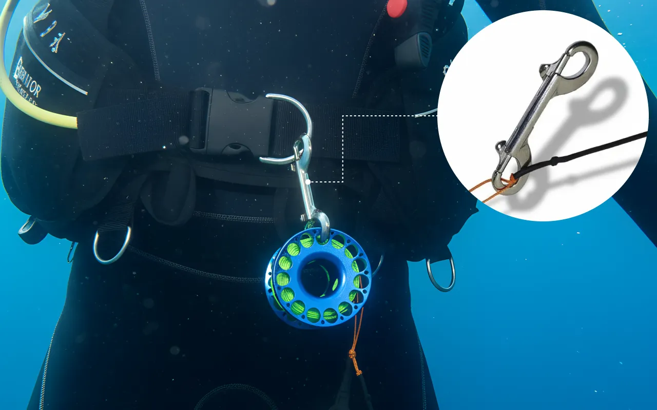 Der Edelstahl-Bolzenschnapphaken lässt sich schnell an Ihrem D-Ring befestigen. Kein Gefummel nötig, sodass Sie sich auf Ihr Unterwasserabenteuer konzentrieren können.