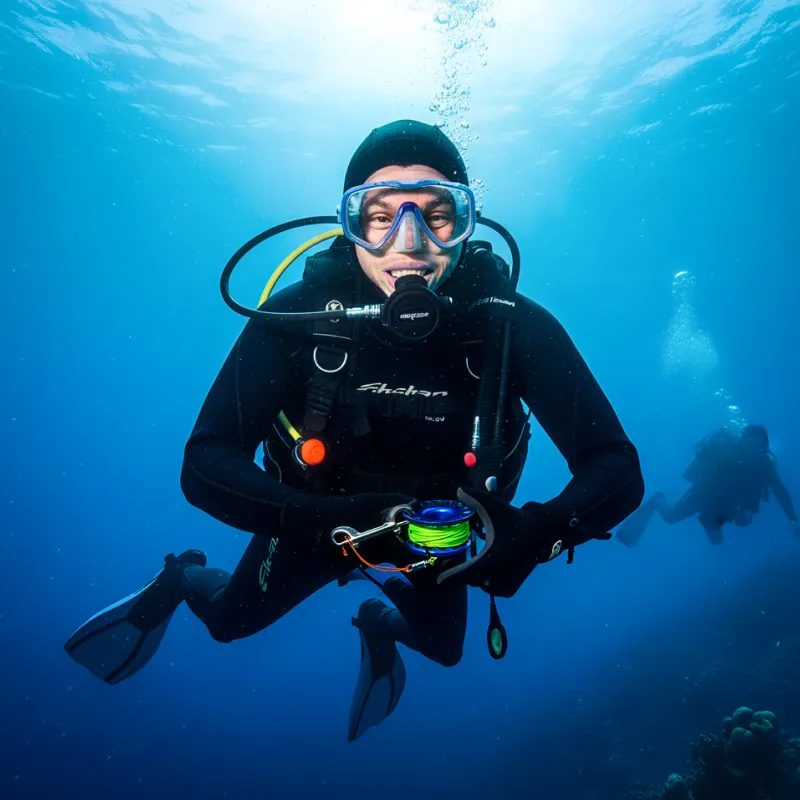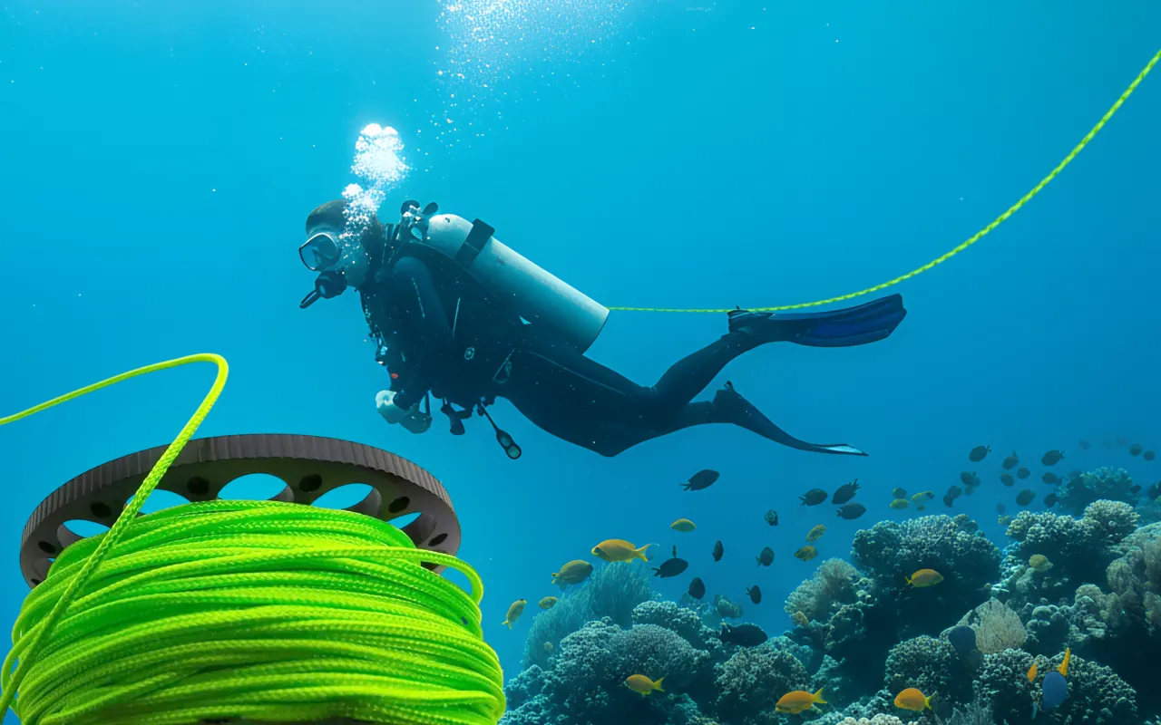 Die Leine ist wirklich gut sichtbar, selbst wenn das Wasser trüb wird. Der Karabiner lässt sich blitzschnell befestigen – kein Gefummel. Nehme sie jetzt bei jedem Tauchgang gerne mit.
