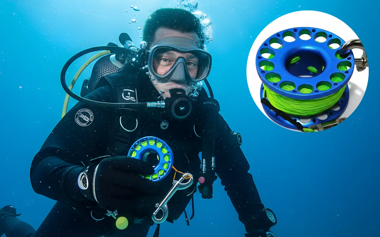 Mit dieser Spule ist Höhlentauchen viel weniger beängstigend. Die leuchtende Leine hilft mir, meinen Weg zu verfolgen, und sie ist nie im Weg.