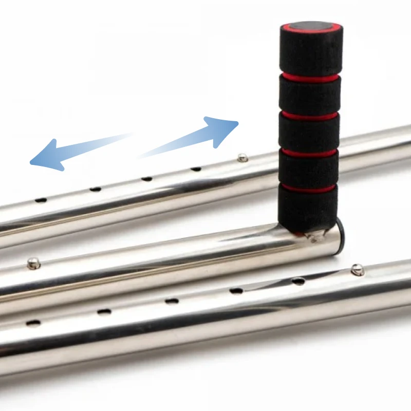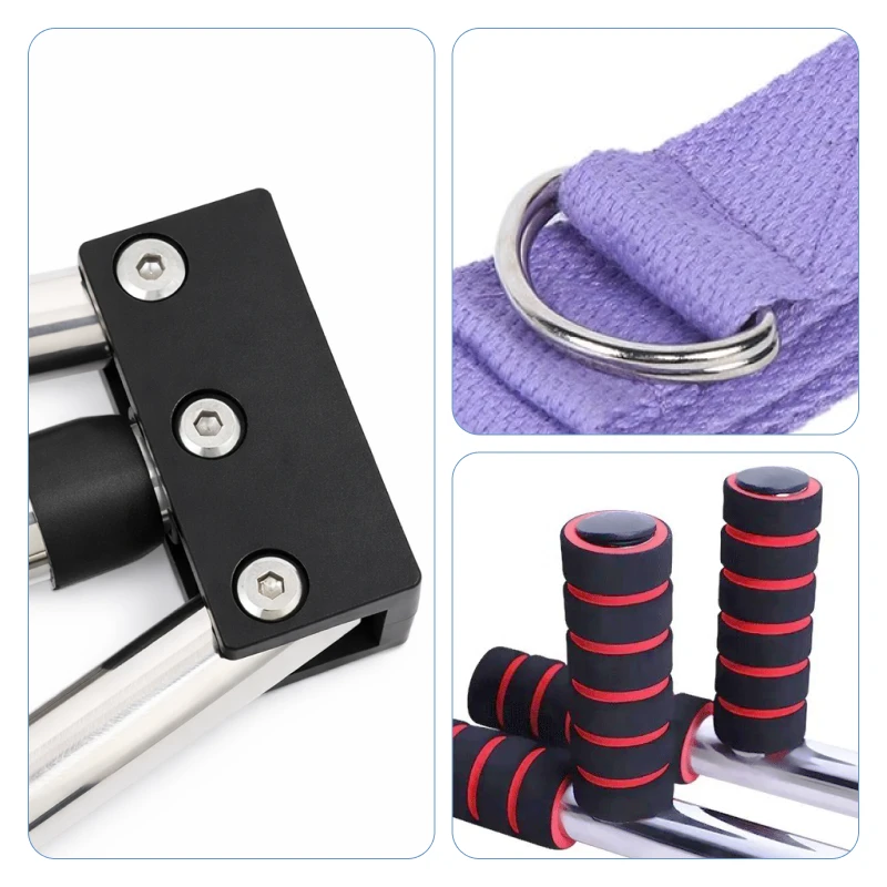 Edelstahlstangen und gepolsterte Griffe bieten dauerhafte Unterstützung. Sanfter Schaumstoff polstert die Füße für eine schmerzfreie Dehnung.