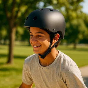 Wir teilen ihn zuhause fürs Skaten und Rollerfahren. Das Einstellrad ist super einfach zu bedienen, was allen gefällt.