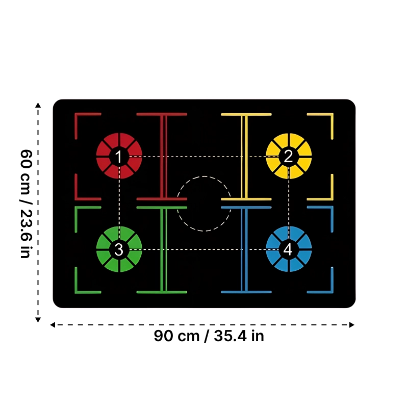 Die klaren Zonen der Threo-Matte helfen dir bei jedem Training, deine Fußarbeit zu leiten. Deine Fähigkeiten verbessern sich schneller, wenn du täglich gezielte Übungen durchführst.