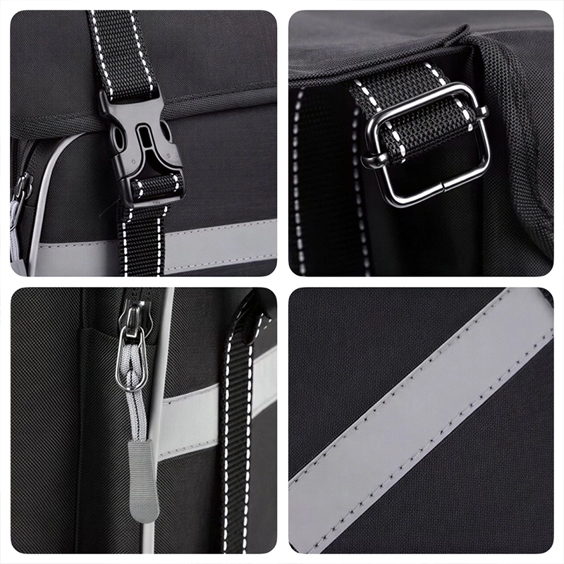 Verstärkte Gurte befestigen die Tasche fest an Ihrem Gepäckträger. Das Design verhindert ein Verrutschen oder Schwanken beim Radfahren. Sie können auch auf unebenem Gelände sicher fahren.