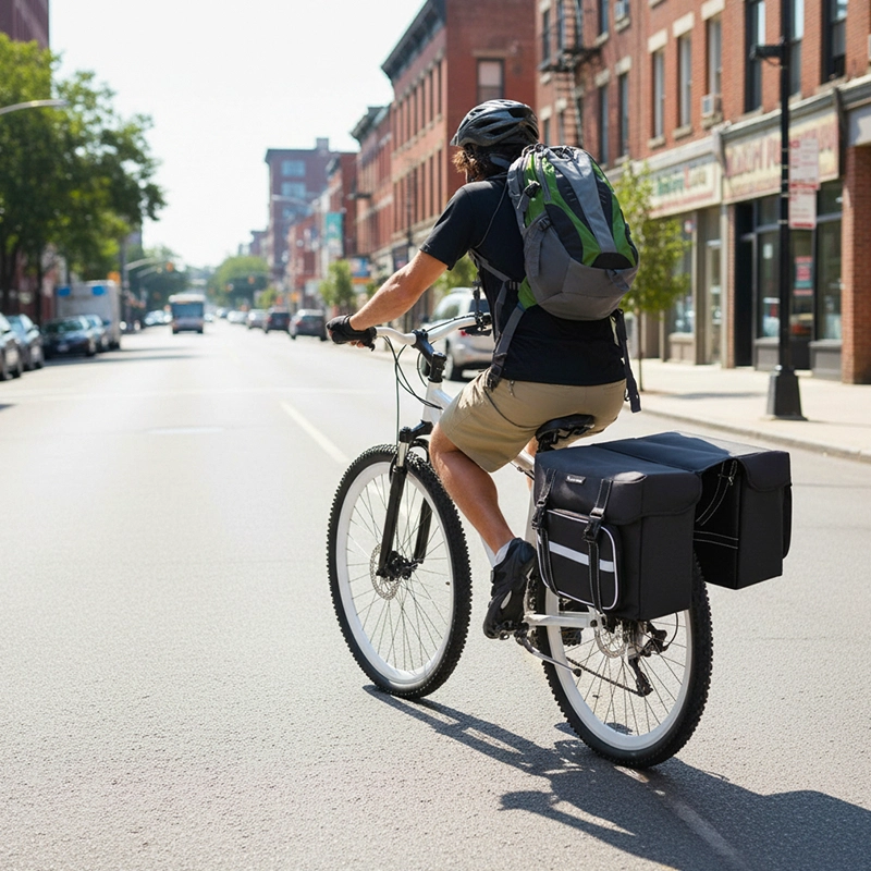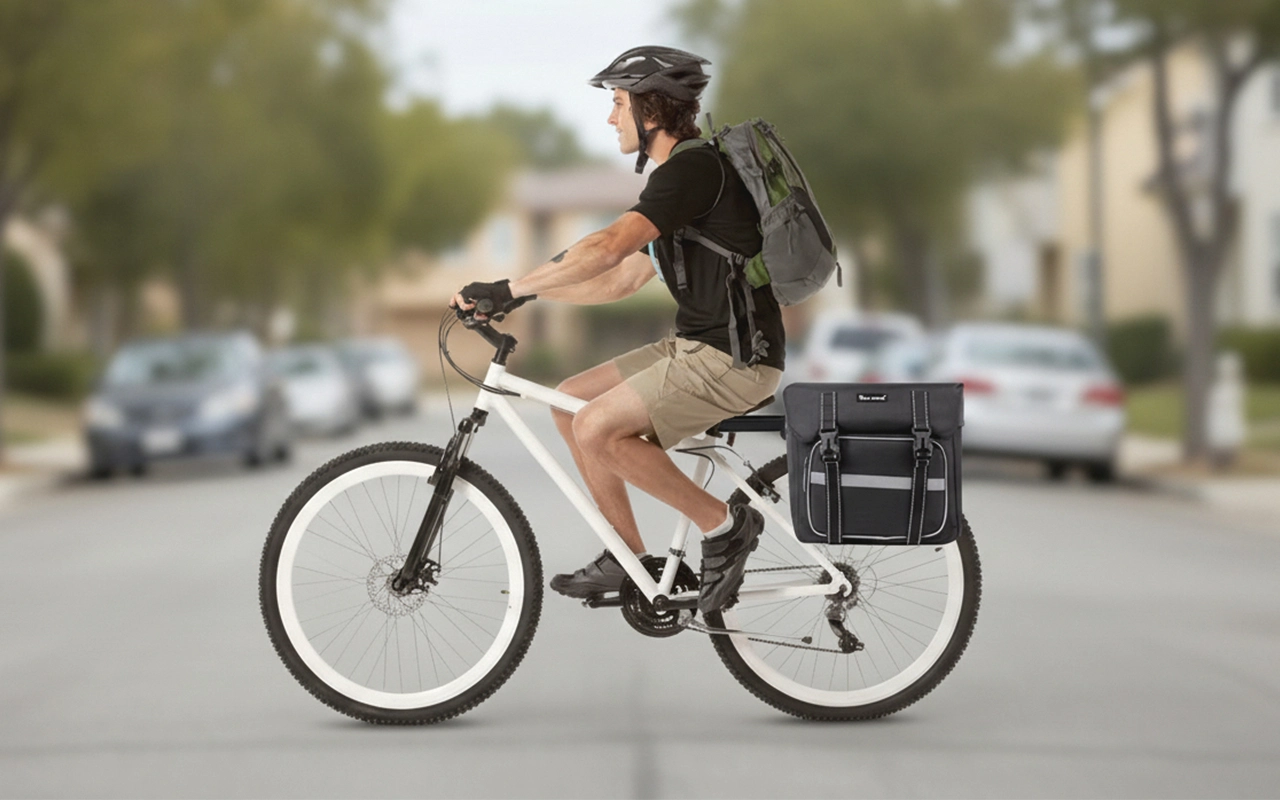 Das ausgewogene Gewicht auf dem hinteren Gepäckträger entlastet Ihren Rücken. Das Fahren fühlt sich auch mit schwererer Last angenehmer an.