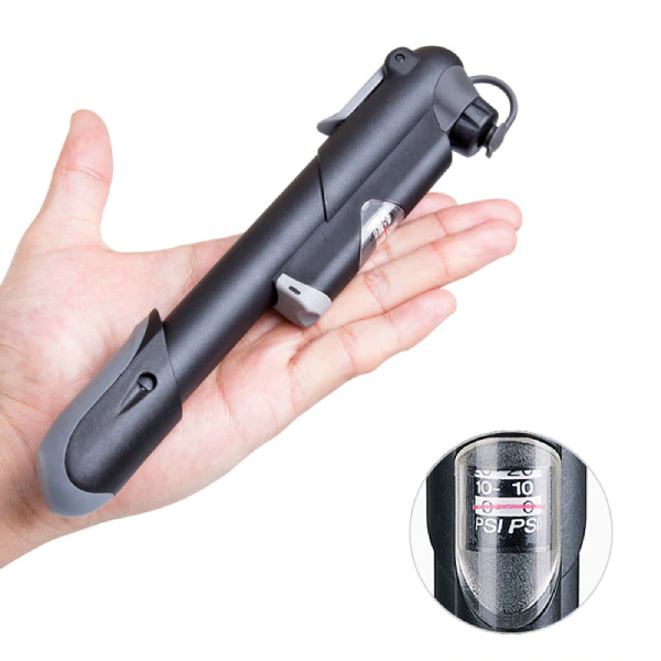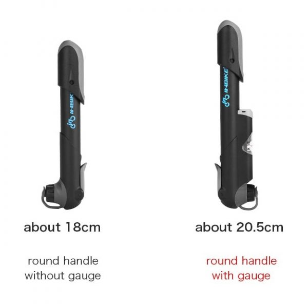 Es sind zwei Arten von THREO-Pumpen erhältlich – mit und ohne Luftdruckmesser. Beide zeichnen sich durch eine leichte, aber zuverlässige Aluminiumkonstruktion aus. Die Pumpe mit Manometer ist etwa 20,5 cm lang und wiegt 106 g. Die Pumpe ohne Manometer ist nur 18 cm lang und wiegt 81 g. Diese Minipumpe ist klein genug, um in eine Tasche zu passen, wird aber auch mit einer Halterung geliefert, die sich einfach an Ihrem Fahrrad befestigen lässt. Die Mini-Fahrradpumpe von THREO kann Ihnen die Fahrt ersparen, wenn Ihr Reifen während einer Radtour Luft verliert. Außerdem können Sie mit dem mitgelieferten Nadeladapter auch alle Ihre Sportbälle aufpumpen.