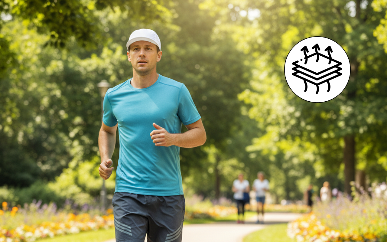 Mesh sorgt für einen konstanten Luftstrom, sodass du dich nie eingeengt fühlst. Feuchtigkeit verdunstet schnell, damit du bei jedem Wetter bequem bleibst.