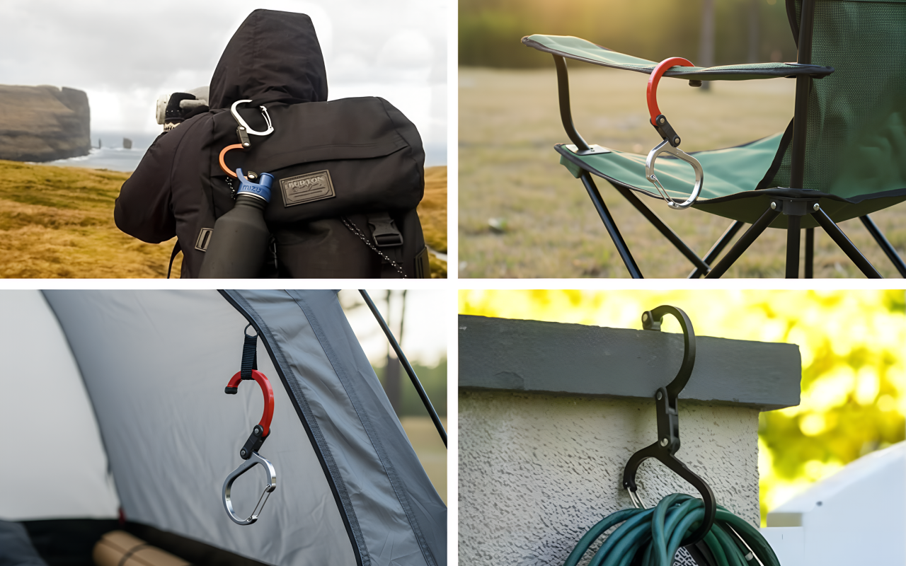 Befestigen Sie Ihre Ausrüstung ganz einfach an Tischen, Stühlen oder sogar Türen. Genießen Sie die Freiheit, Gegenstände überall dort aufzuhängen, wo Sie sie schnell benötigen.