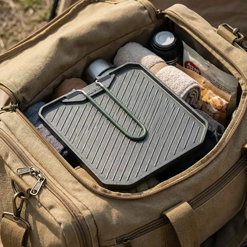 Wir haben sie für einen Roadtrip eingepackt und jedes Abendessen darauf gekocht. Hähnchen, Paprika und sogar Toast sind super gelungen, und der klappbare Griff hat das Packen erleichtert.