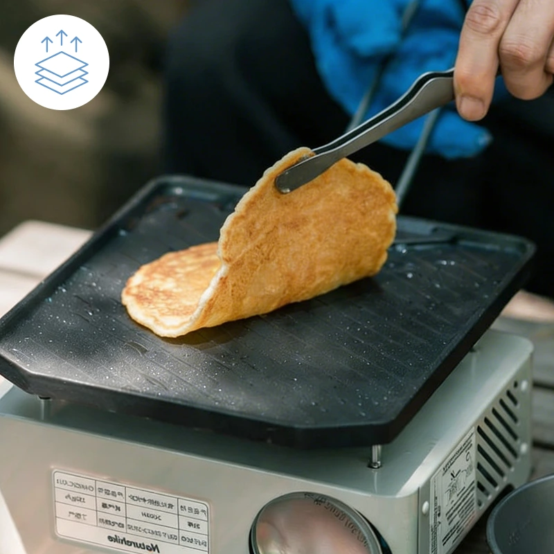 Genießen Sie köstliche Mahlzeiten im Freien mit der Threo Pfanne. Schnelles Aufheizen spart Zeit, sodass das Essen rasch servierfertig ist. Ihre clevere Oberfläche verhindert Anhaften nach jeder Mahlzeit. Die Reinigung dauert nur Sekunden, damit Ihre Ausrüstung makellos bleibt.