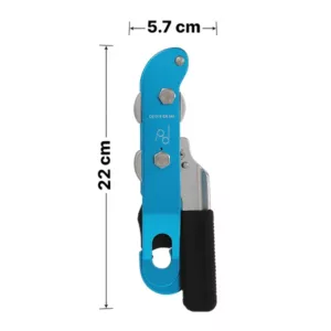 Beim Klettern ist es wichtig, schnell handeln zu können. Unser Abseilgerät mit seinem einfachen Mechanismus ermöglicht genau das. Es arbeitet mit einem auf Reibung basierenden System. Durch Druck auf das Seil wird ein Widerstand erzeugt, der eine sanfte Regulierung der Abseilgeschwindigkeit ermöglicht. Dazu müssen Sie nur eine minimale Kraft auf den Griff ausüben, ähnlich wie bei der Bedienung einer Schere.