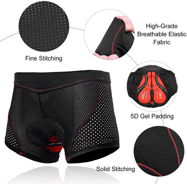 Diese Unterhose für Radfahrer wurde speziell für die Form eines Fahrradsitzes entwickelt und mit einem 5D-Polster genäht. Sie schützen Ihre Haut vor der Reibung des Beins am Fahrradsitz. Diese bequemen, gepolsterten Fahrradshorts ermöglichen es Ihnen, die Strecke zu radeln, ohne dass Sie sich wundscheuern oder sich am Sattel wundscheuern, für einen absolut wolkengleichen Komfort. Atmungsaktives Polyestermaterial nimmt den Schweiß leicht und schnell auf und leitet ihn von der Haut ab. Es ist leicht, weich und bequem und drückt auch bei einer langen Fahrt nicht auf den Körper. Daher ist es schnell trocken mit guter Elastizität und Atmungsaktivität. Außerdem können diese Unterhosen problemlos unter der Alltagskleidung getragen werden!