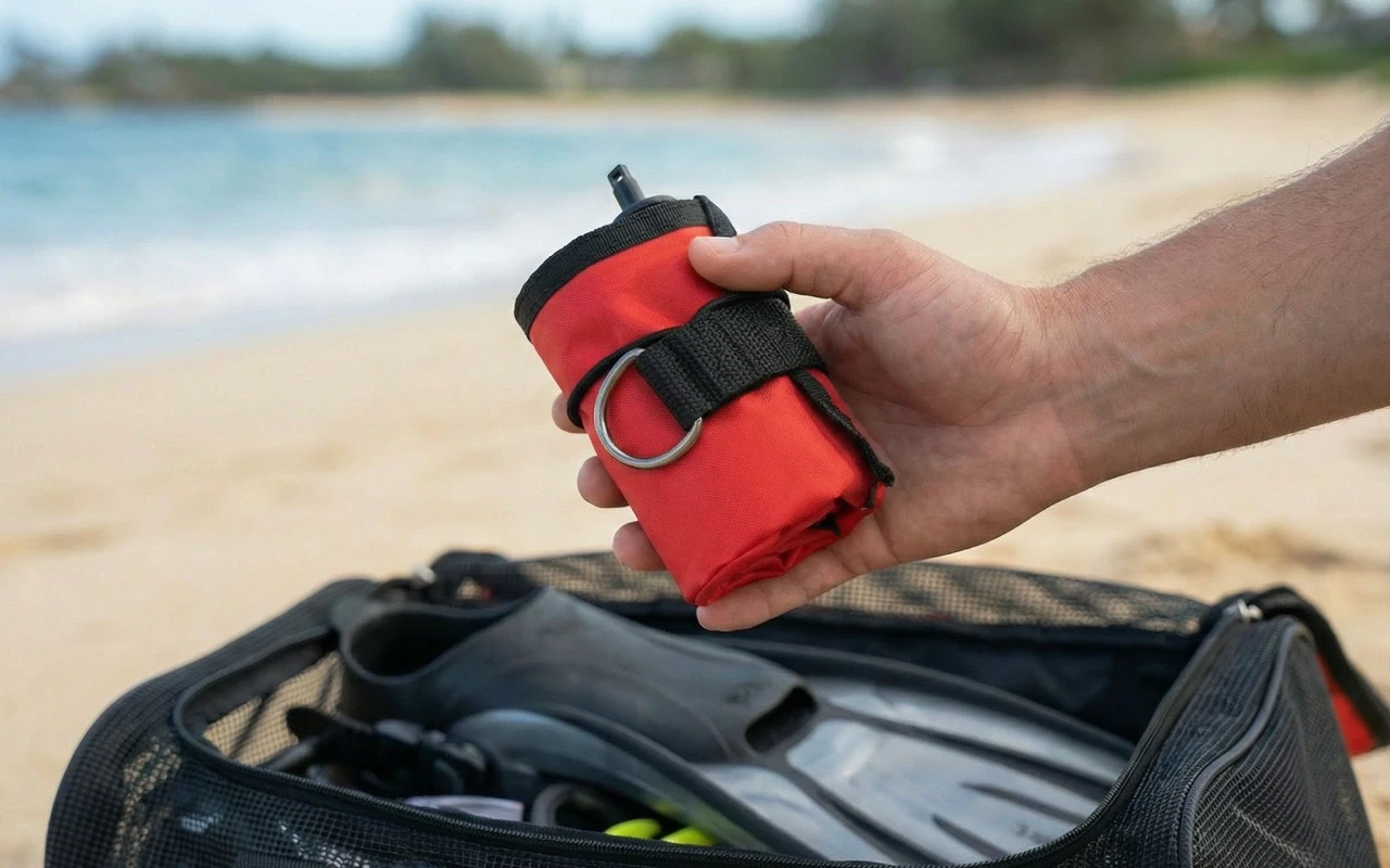 Diese Markierungsboje lässt sich kompakt zusammenfalten und passt in Ihre Tasche oder Hosentasche. Das schnelle Aufbauen ermöglicht es Ihnen, den Tauchgang sicher zu genießen.