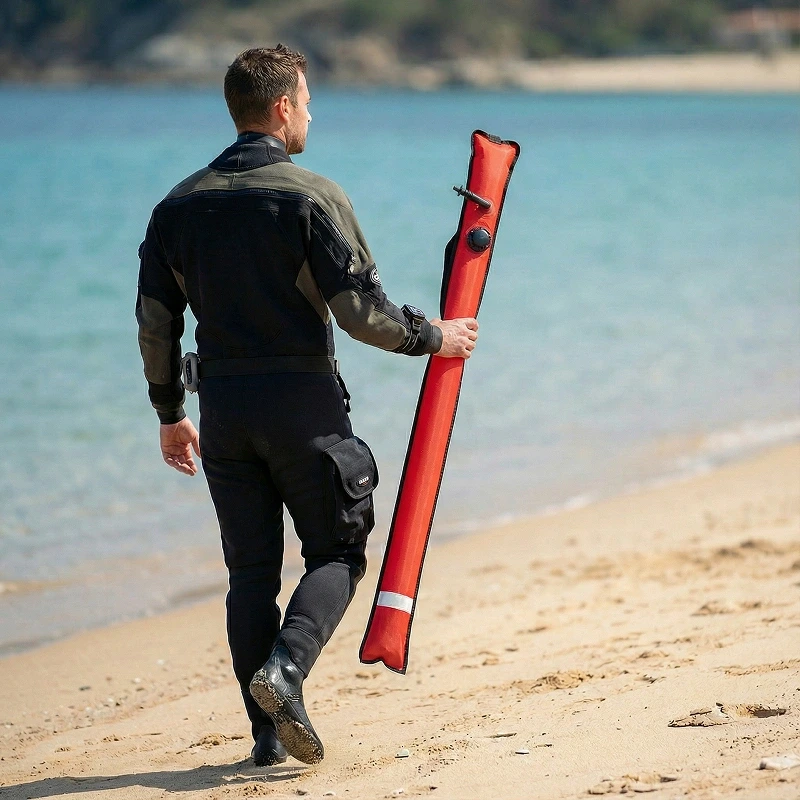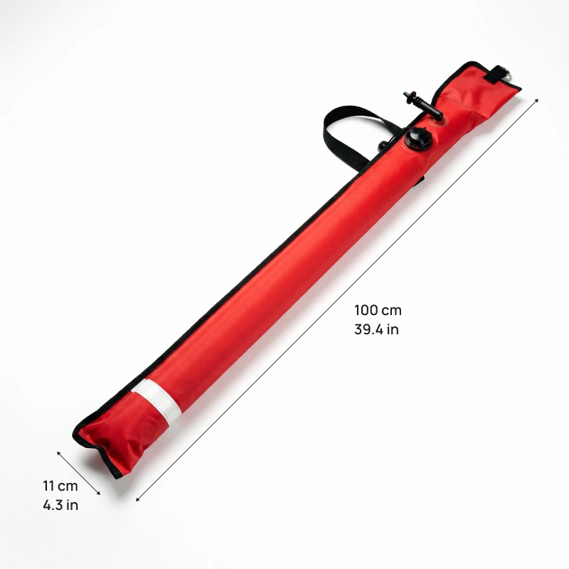 Ich nehme diesen Schwimmkörper jetzt zu jedem Tauchgang mit. Leicht zu finden, lässt sich ordentlich verpacken, stabiles Material. Gibt ein sicheres Gefühl, weil Boote mich sehen können.