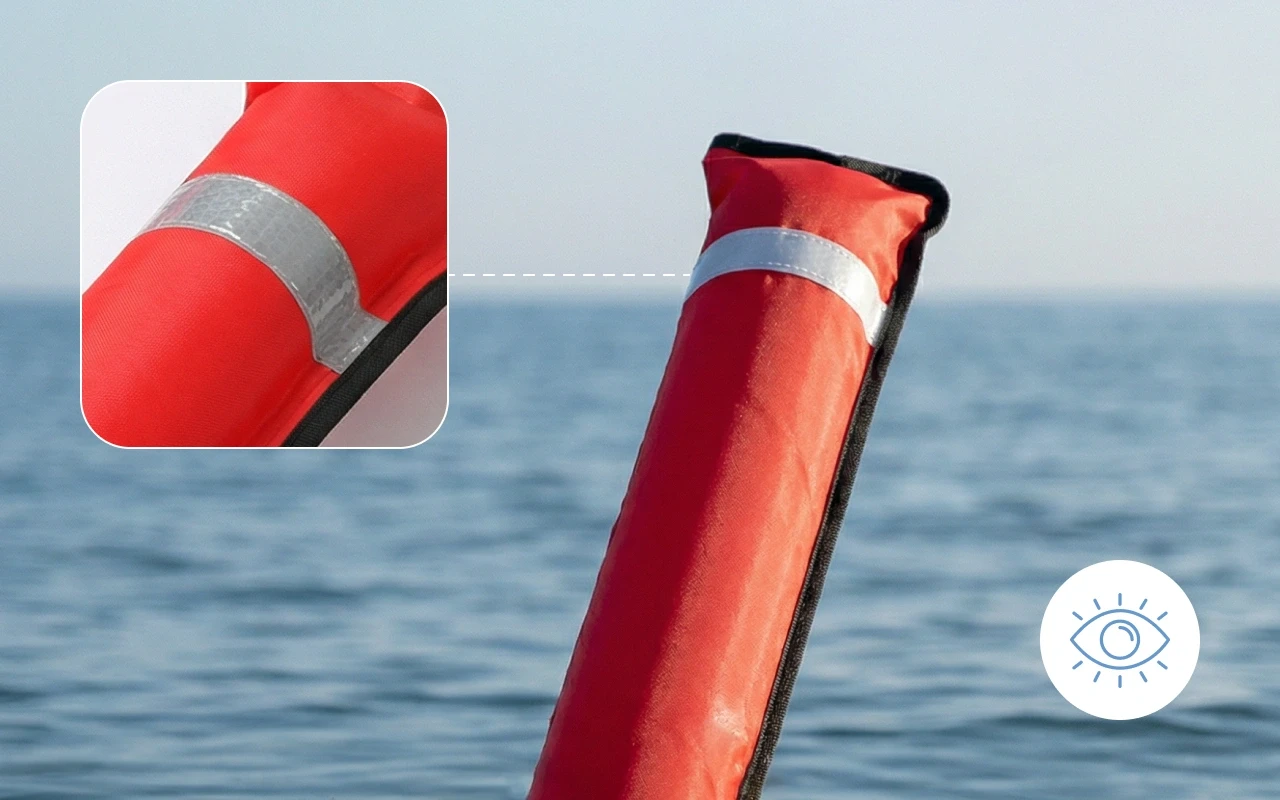 Kräftige fluoreszierende Farben stechen im offenen Wasser hervor. Rettungsteams und Boote können Sie sofort erkennen.