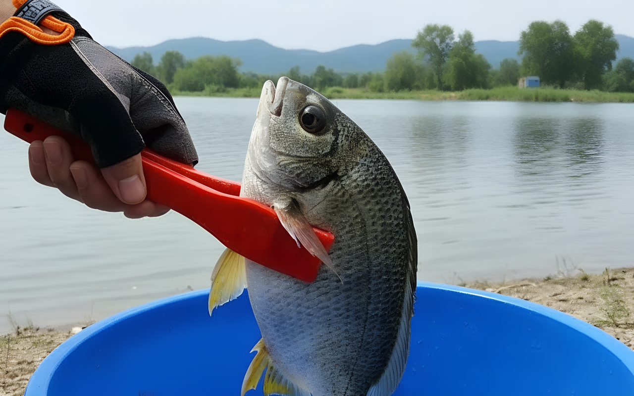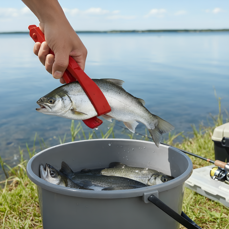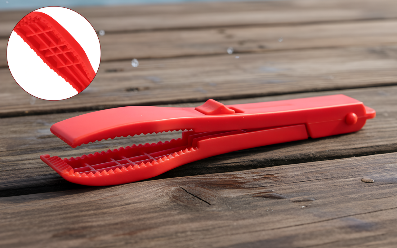 Mein kleiner Bruder kommt mit großen Fischen zurecht dank dieser Klemme, sie öffnet sich leicht und verletzt weder Finger noch Fisch.