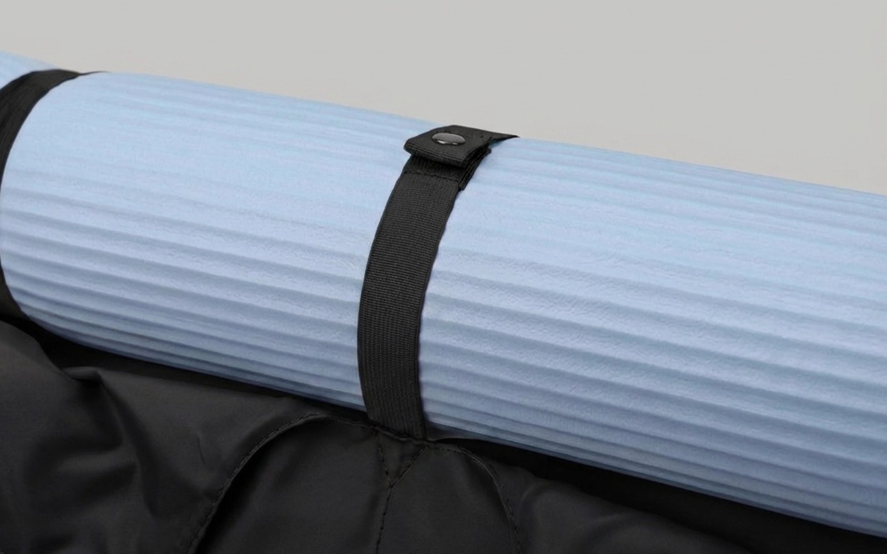Der Mattenriemen ermöglicht es mir, mit freien Händen zu gehen – praktisch, um nach dem Training den Bus zu erwischen. Ich mag, wie alles im Inneren organisiert bleibt.