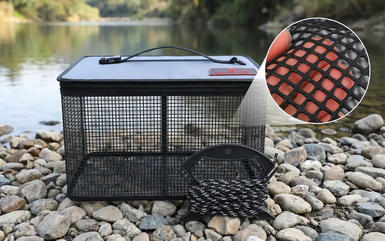 Dieser faltbare Korb ist perfekt fürs Angeln am Fluss. Einfach mit dem Seil ins Wasser gelassen und meine Hände blieben den ganzen Nachmittag trocken.