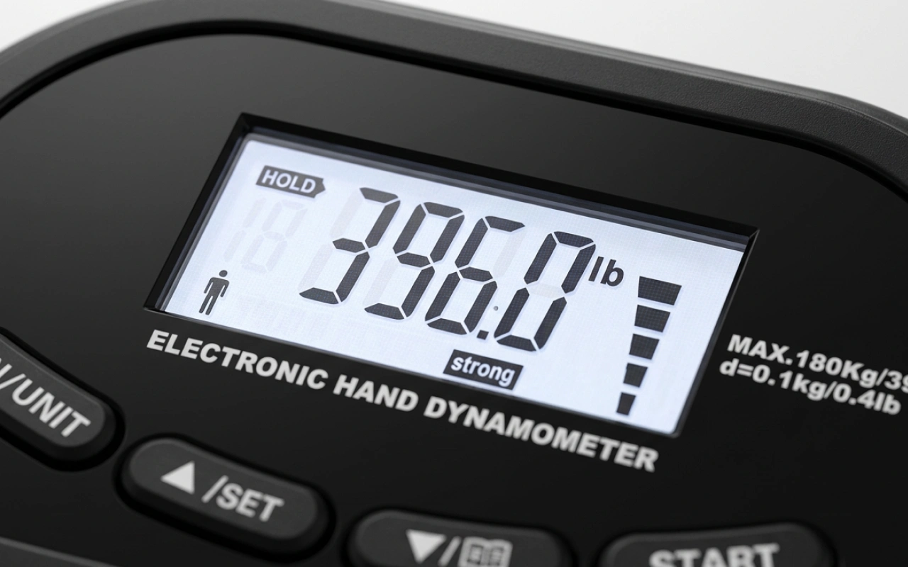 Das Threo-Grip-Dynamometer macht tägliche Kontrollen der Handkraft einfach. Sehen Sie klare Messwerte auf einem großen Bildschirm ohne Verwirrung. Vergleichen Sie die Ergebnisse mühelos und erkennen Sie Verbesserungen sofort.