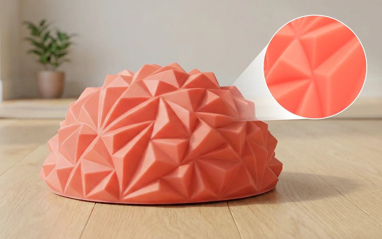 Immer wenn ich Spannung im Fußgewölbe spüre, beseitigt der strukturierte Ball sie. Er ist sehr stabil und ich habe ihn seit Monaten ohne Probleme.
