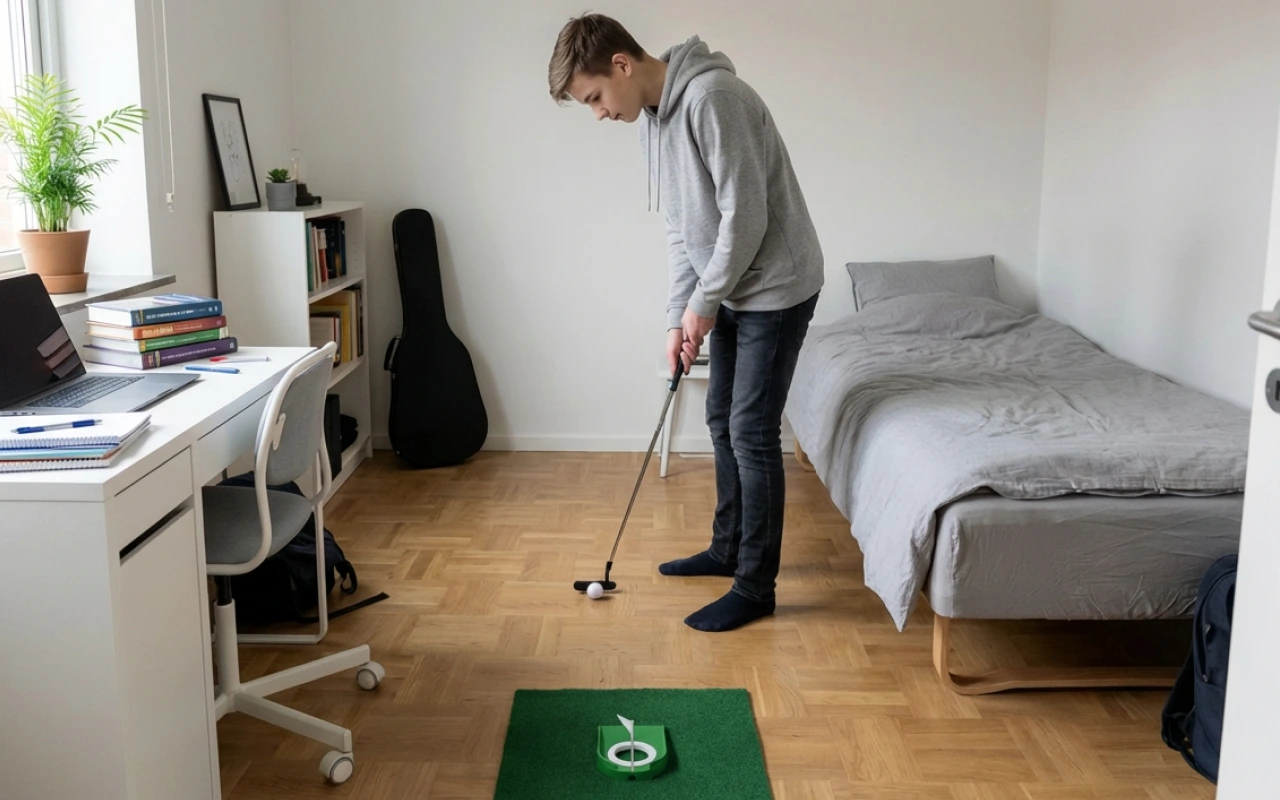 Die Putting-Schale ist super, um nach der Arbeit Stress abzubauen. Ich stelle sie in meinem Wohnzimmer auf und verliere mich beim Üben.