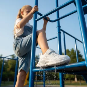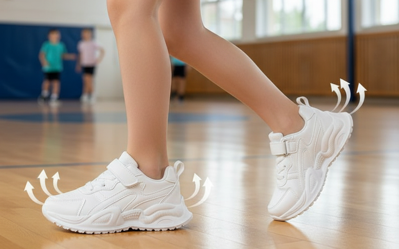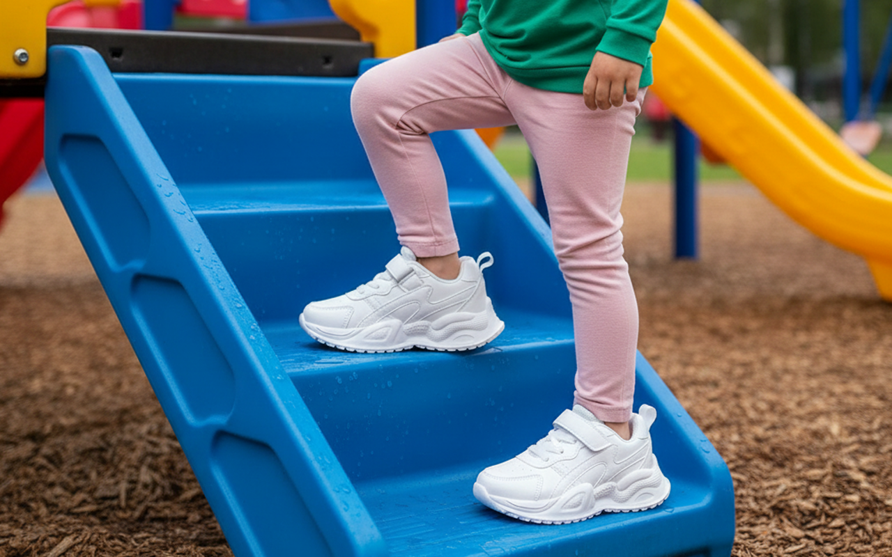 Dicke Sohlen helfen, Ausrutschen auf nassen Spielplätzen oder Turnhallenböden zu verhindern. Kinder genießen sichere Bewegungen, wo immer sie unterwegs sind.