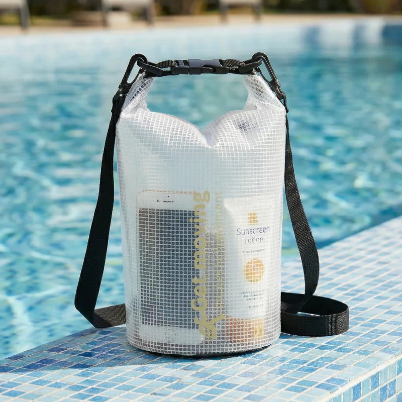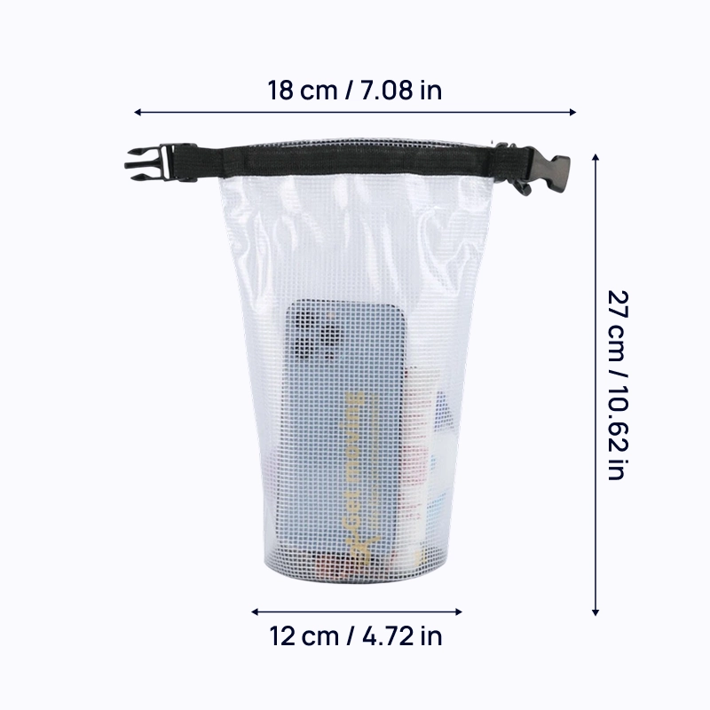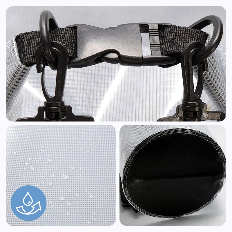 Gegenstände bleiben dank des wasserdichten Mesh-Gewebes trocken. Kein Spritzwasser oder Sand kann eindringen, sodass Ihre Habseligkeiten sicher bleiben.