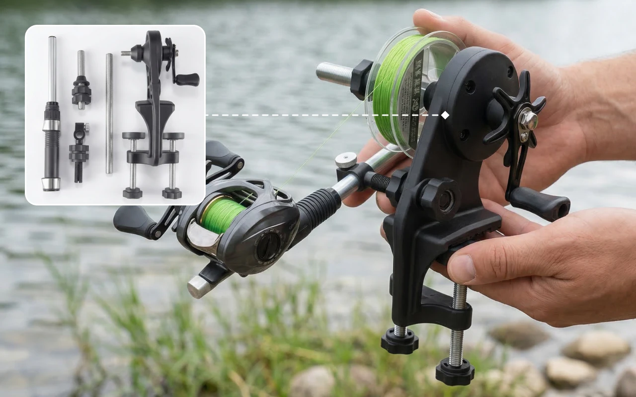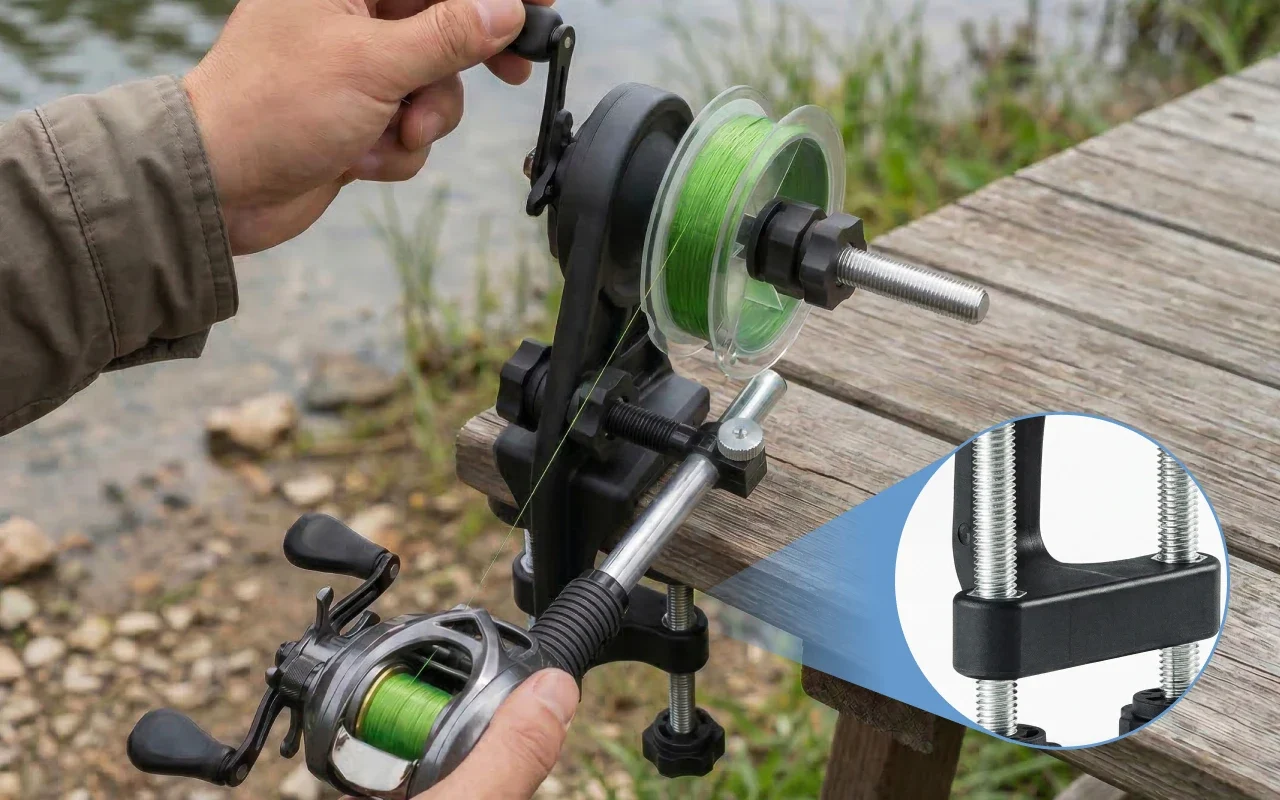 fishing line spooler, fishing line winder, fishing reel spooler