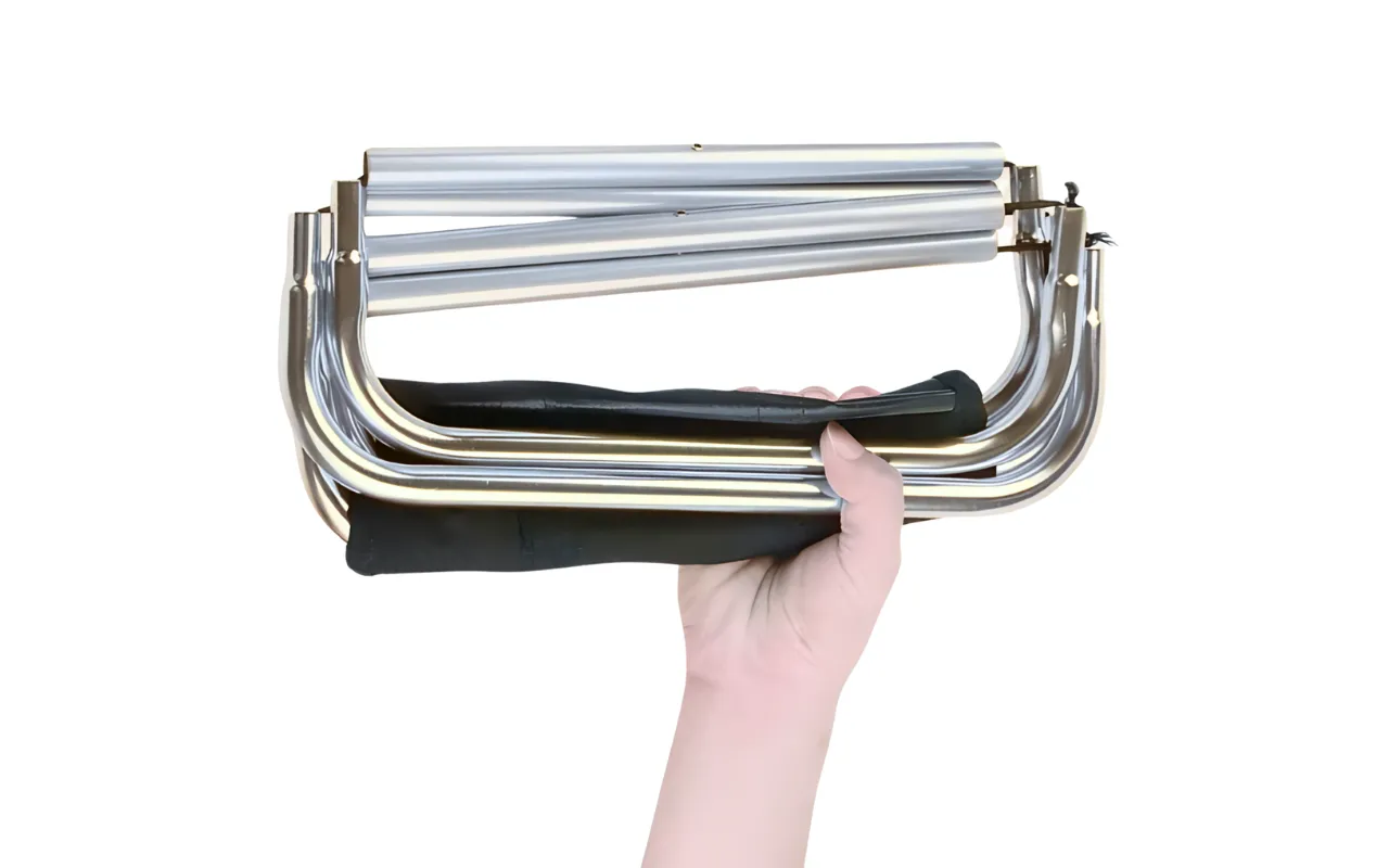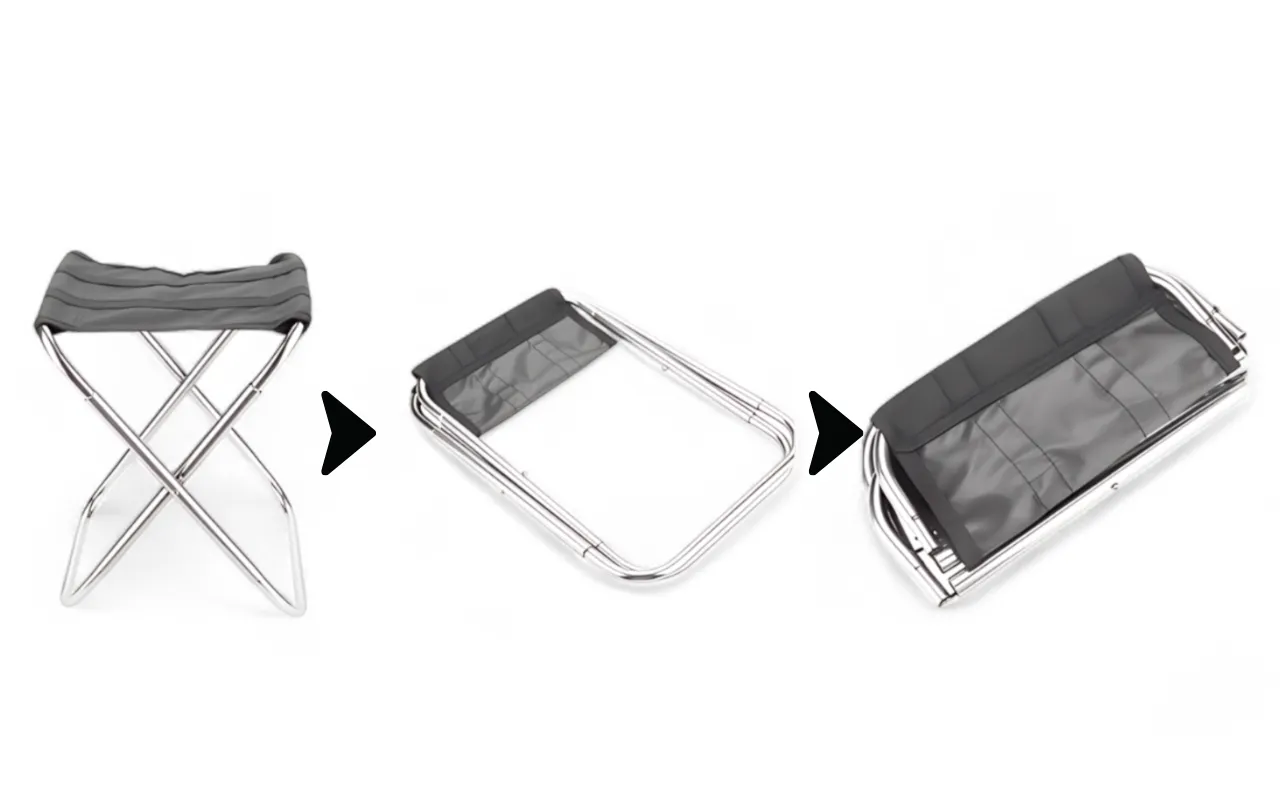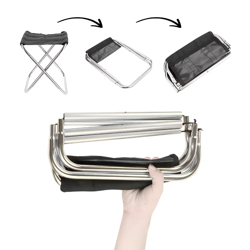 Tragen Sie diesen Stuhl mühelos mit nur einer Hand überall hin. Er passt bequem in Rucksäcke oder Taschen für stressfreie Reisen.