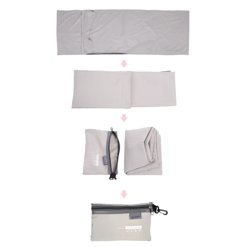 Nehmen Sie Ihren Schlafkomfort überallhin mit, ganz einfach. Der Innenschlafsack lässt sich schnell zu einer kleinen Tasche zusammenfalten und praktisch verstauen.