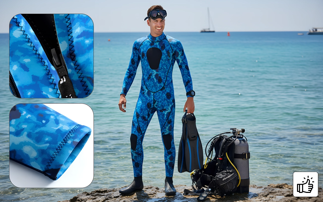 Camouflage-Design verbirgt Sie vor Meerestieren und Gefahren. Robuste Verarbeitung schützt die Haut vor Stichen, Kratzern und scharfen Gegenständen.
