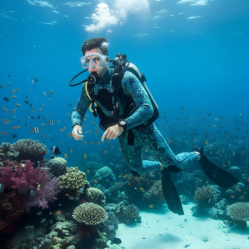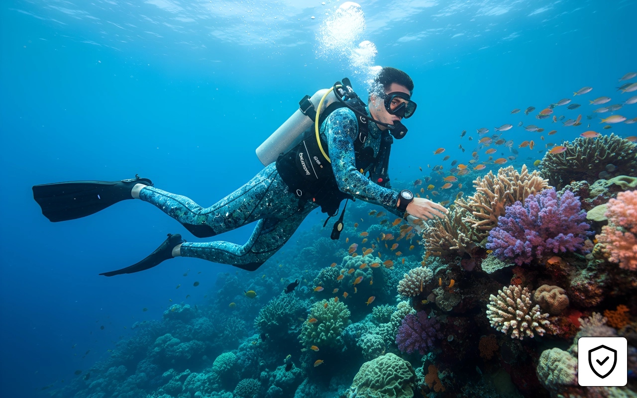 Drei Millimeter Neopren halten Ihre Körperwärme konstant. Kaltes Wasser wird Ihr Unterwassererlebnis nicht beeinträchtigen.