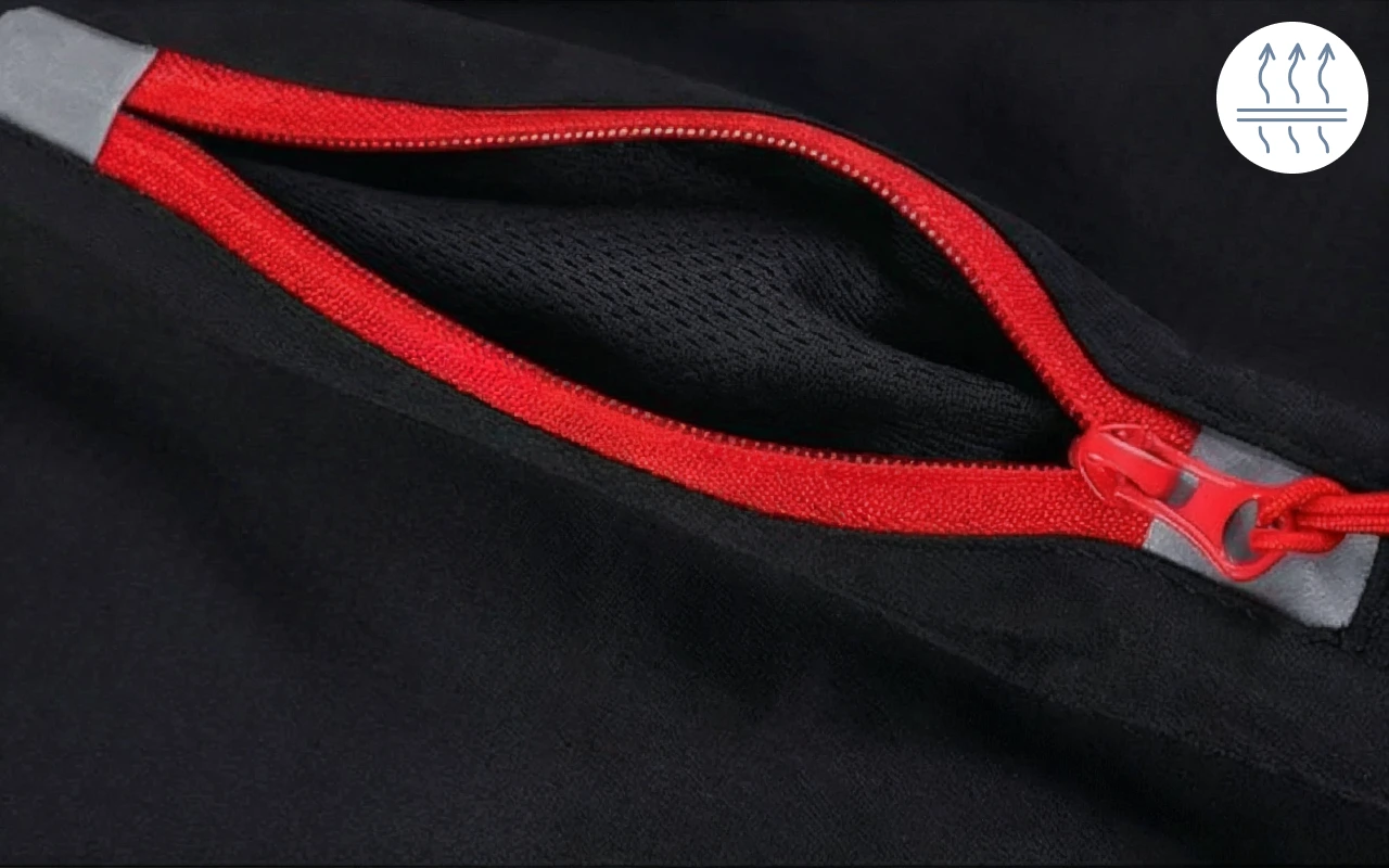 Belüftete Einsätze lassen Luft zirkulieren und verringern Überhitzung. Feuchtigkeit trocknet schnell, sodass du dich immer leicht und beweglich fühlst.
