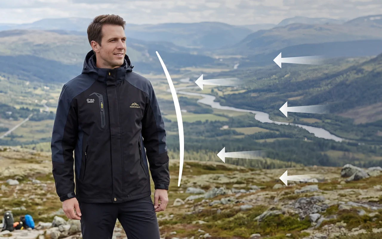 Kalte Böen bleiben dank hochdichter Gewebelagen draußen. Die Temperatur bleibt stabil, während Sie erkunden oder klettern.