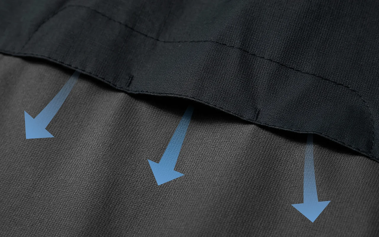 Wasser kann nicht durch das fortschrittliche Außenmaterial dringen. Genießen Sie sorgenfreie Tage selbst bei starkem Regen.