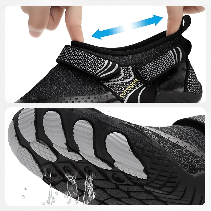Speziell entwickelte Sohlen verhindern unerwünschtes Ausrutschen oder Stürze auf nassem Untergrund. Gehen Sie sicher, schwimmen Sie oder erkunden Sie felsige Wege.