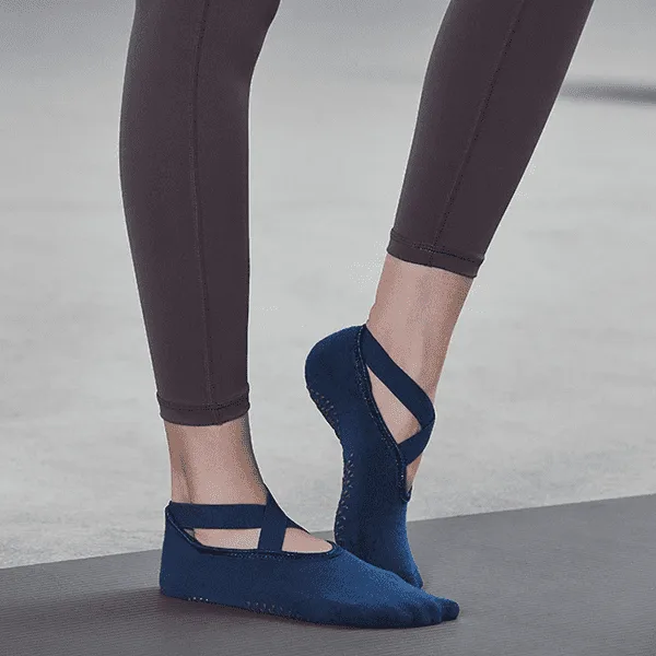 Die Threo-Yoga-Socken sind Trainingssocken für Frauen, die Yoga, Pilates, Barre, Ballett und Tanz praktizieren. Rutschfeste Riemen und Griffe verbessern die Stabilität während des Trainings, und eine Größe passt allen Fitnessbegeisterten. Genießen Sie Hygiene, Komfort, Halt und Traktion barfuß.