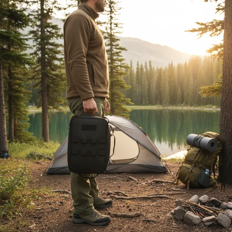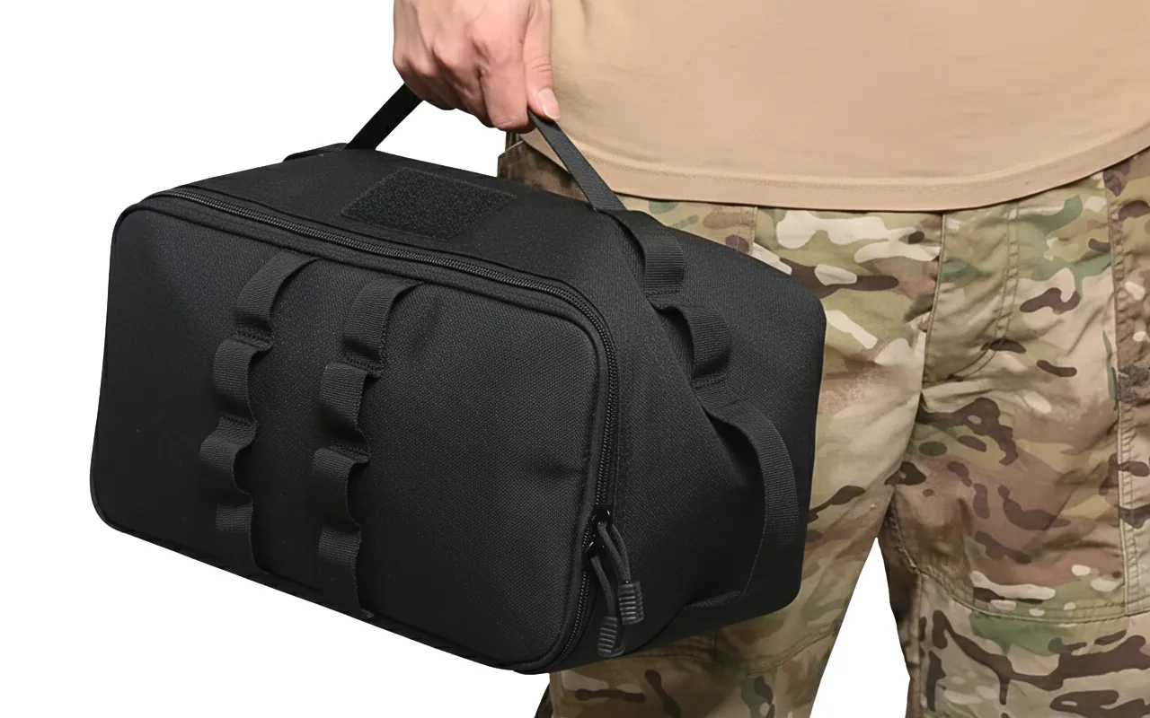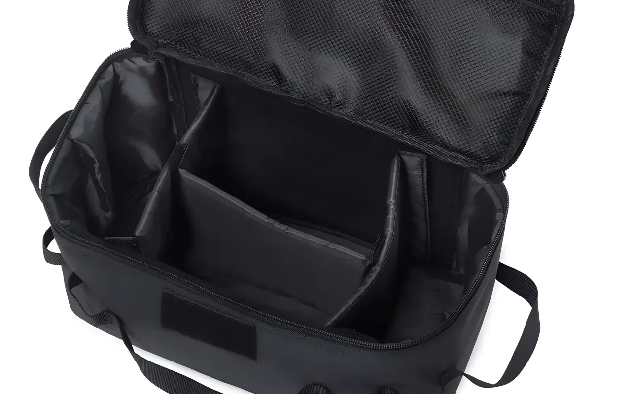 Robuster Außenstoff schützt die Ausrüstung vor Schmutz, Regen und Stößen. Alles im Inneren bleibt sauber und sicher, selbst unter widrigen Bedingungen.