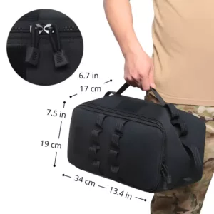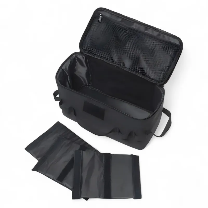 Ich liebe, wie viele Fächer die Tasche innen hat! Ich habe meine Laterne, Werkzeuge und sogar Snacks reinbekommen. Regen oder Schlamm kommt nicht herein – einfach toll.
