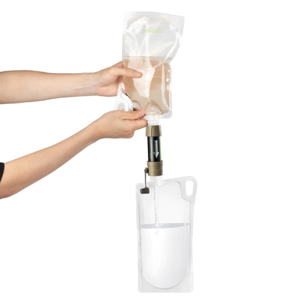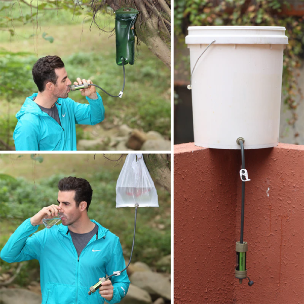 Die Größe ist sehr kompakt (4 * 13,6 cm), sodass Sie den Wasserfilter leicht in Ihren Rucksack oder sogar in Ihre Tasche stecken können. Eine handliche Flasche kann auf die Dichtung für Rückspülung ohne Leckage abgedeckt werden. Sie brauchen keine Spritze mehr mit sich zu führen. Dieser Wasserfilter ist eine gute Wahl für Wanderer, Campen, Jagd, Klettern und Reisen. Er ist auch eine erschwingliche Quelle für sauberes Trinkwasser für Menschen, die in Konfliktgebieten, Aufruhrgebieten, Dörfern und Stammesgebieten leben.