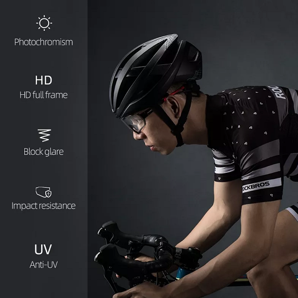 Die photochrome THREO-Fahrradbrille schützt Ihre Augen perfekt vor Sonneneinstrahlung. Die Brille verändert automatisch den Grad der Dunkelheit und Helligkeit je nach Grad der ultravioletten Strahlung. Außerdem passt sich unsere Fahrradbrille perfekt an alle Licht- und Wetterbedingungen an. Dank dieser Technik müssen Sie bei verschiedenen Outdoor-Aktivitäten nie die Brille wechseln. Darüber hinaus bietet die großflächige Brille ein größeres Sichtfeld und schützt Ihre Augen vor Wind, Staub und Mücken.