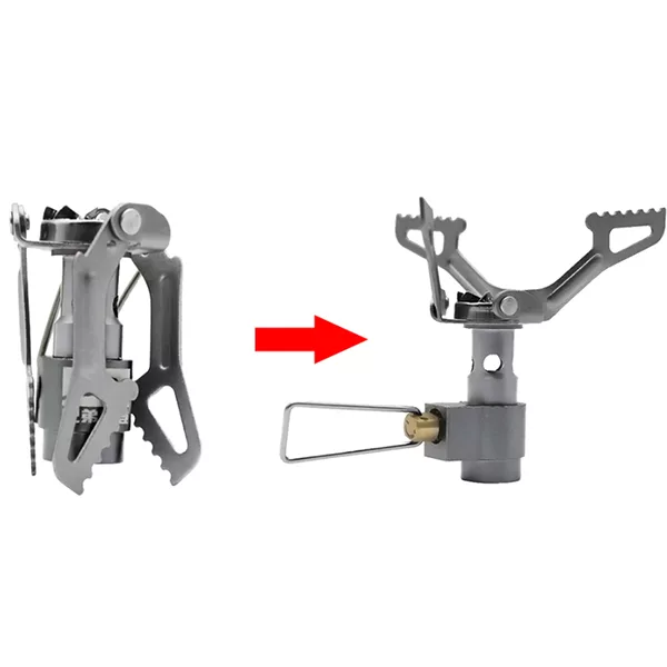 Die Installation unseres Mini-Ofens ist super einfach, erfordert keine speziellen Werkzeuge und dauert nur 10 Sekunden. Bitte beachten Sie alle Vorsichtsmaßnahmen und erlauben Sie Kindern nicht, das Produkt zu benutzen. Vergewissern Sie sich, dass das Regelventil vollständig ausgeschaltet ist, bevor Sie den Ofen aufdrehen. Drehen Sie zunächst das Ventil des Minikochers mit den Händen im Uhrzeigersinn auf den Brennstoffkanister. Dann klappen Sie die oberen drei Topfhalter aus. Zum Schluss öffnen Sie das Ventil gegen den Uhrzeigersinn und nehmen den Minikocher in Betrieb.