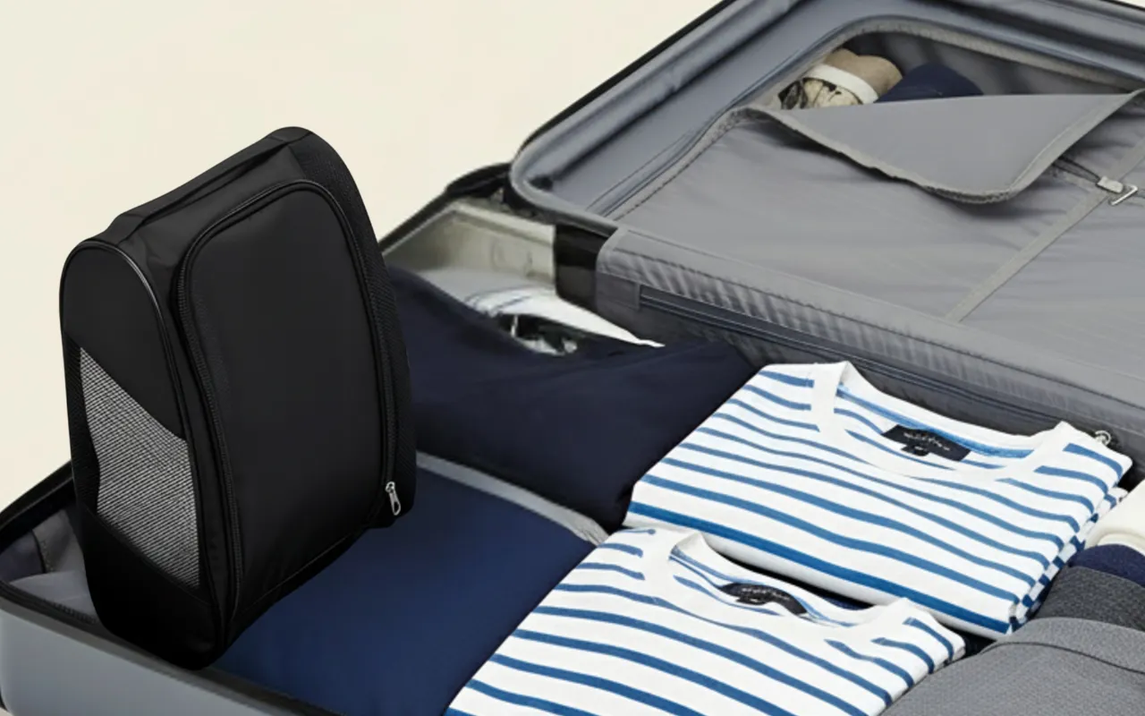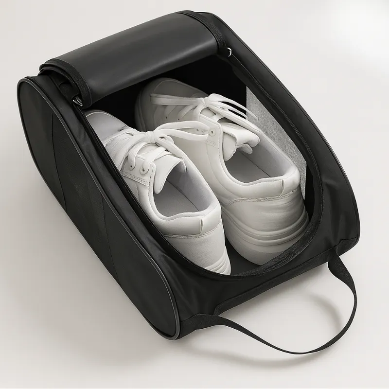 Super praktisch, um meine Schuhe unterwegs beisammen zu halten. Sie nimmt kaum Platz ein und bewahrt meine Sportschuhe den ganzen Tag sicher auf.