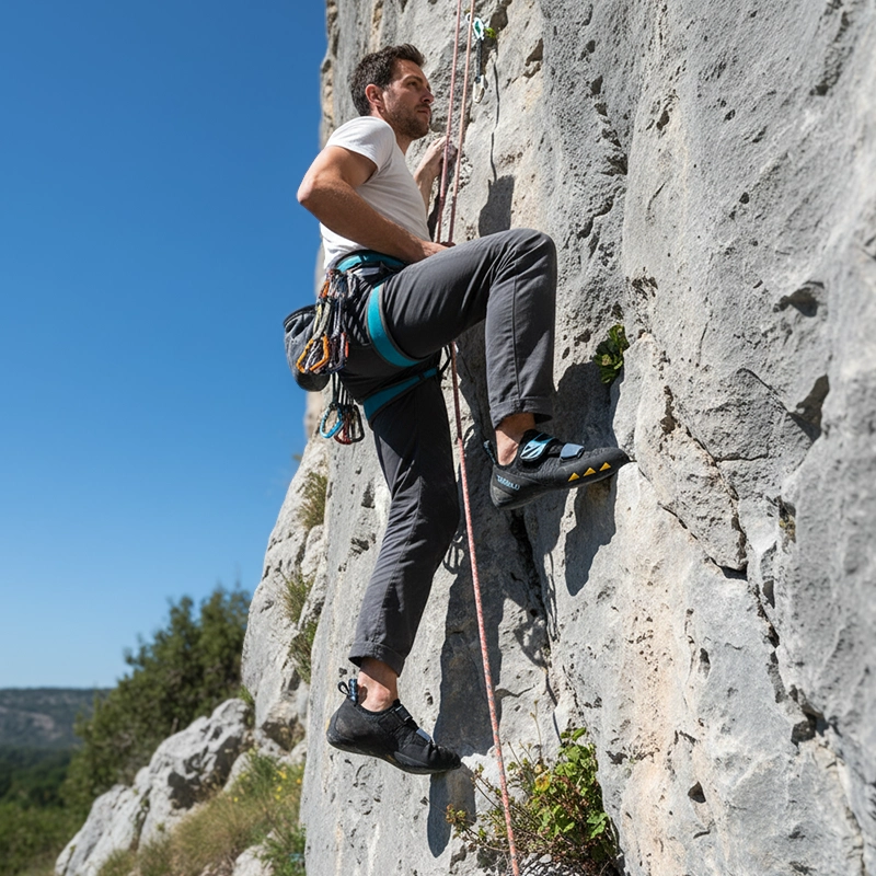 Verstellbare Riemen halten die Füße beim Klettern fest und sicher. Genieße zuverlässigen Halt bei jeder Route drinnen oder draußen.