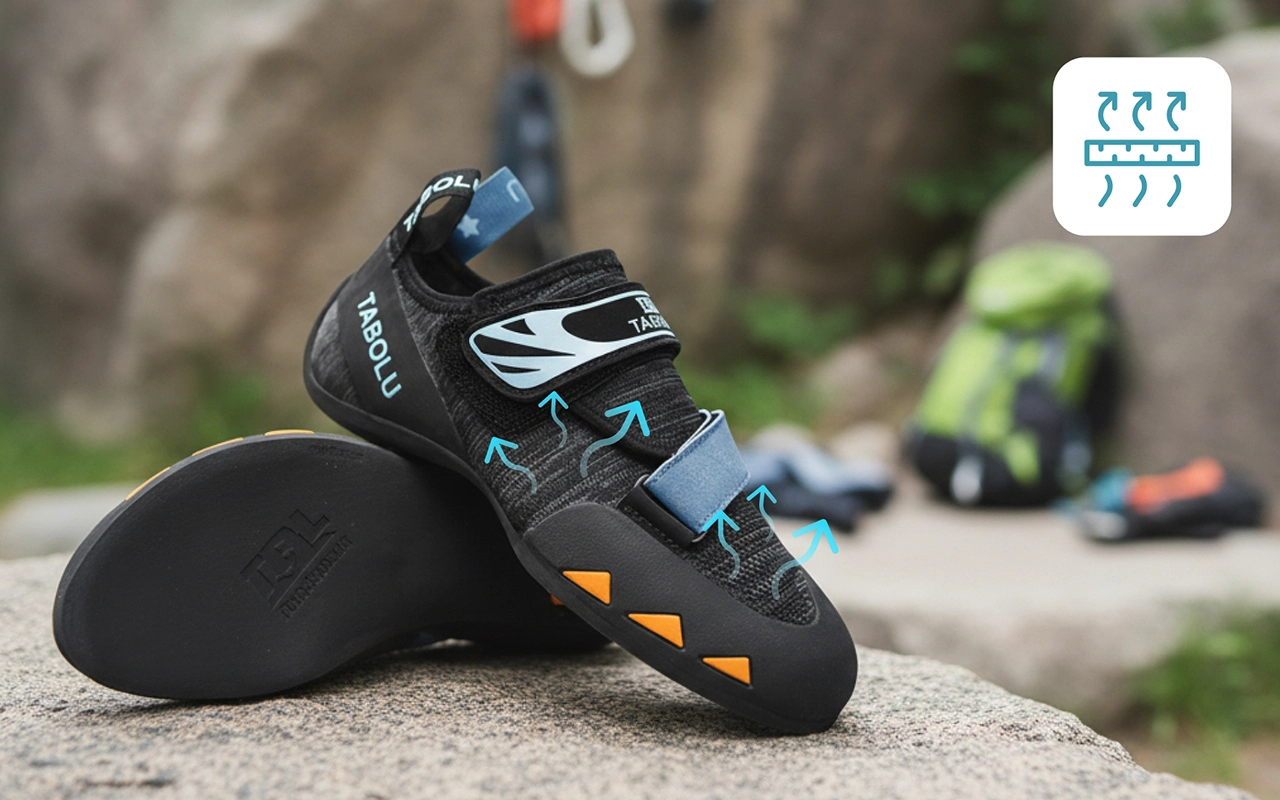 Mesh-Einsätze lassen Luft frei um die Zehen zirkulieren. Bleib auch bei langen Klettersessions kühl und komfortabel.