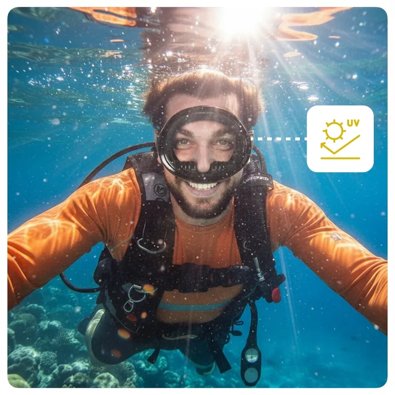 Endlich kann ich unter Wasser schwimmen, ohne mich über Lecks Sorgen machen zu müssen! Die Linse bleibt immer klar, leicht zu reinigen, sanft zu meiner Haut.