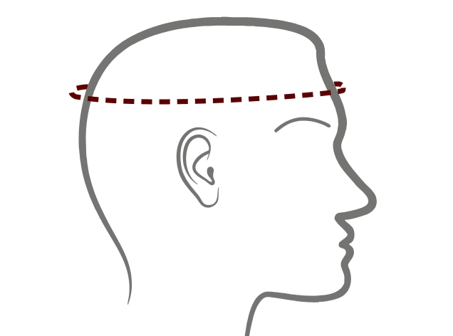 - 1. Legen Sie das Maßband um die breiteste Stelle des Kopfes, direkt über den Augenbrauen und Ohren.