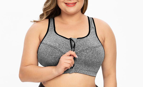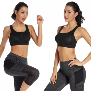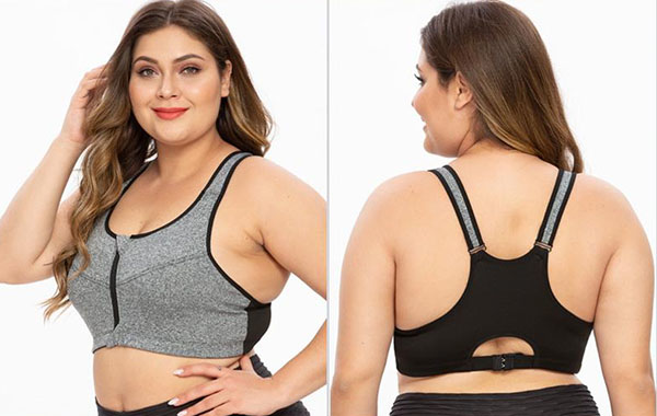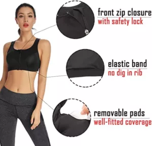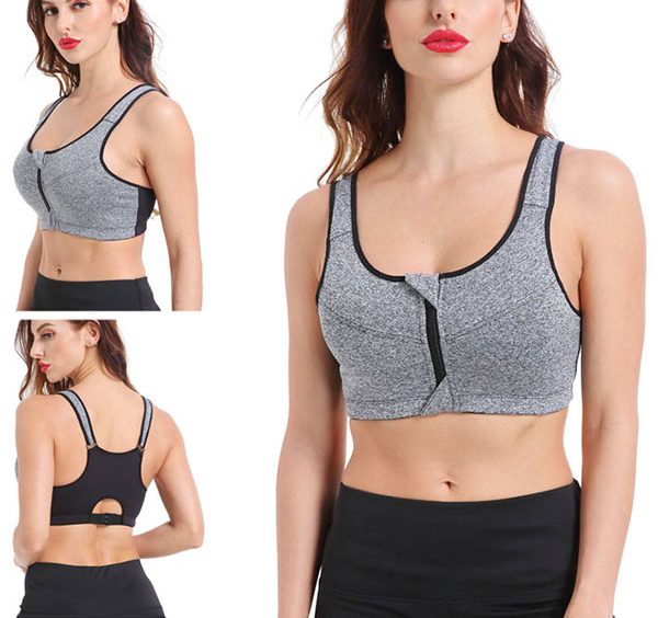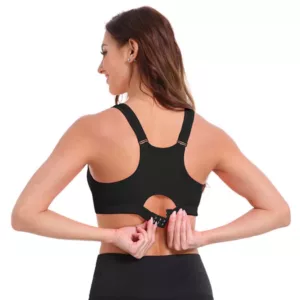 Der I-förmige Träger im Rücken schützt effektiv vor Stößen und verhindert, dass der BH verrutscht. Der BH hat einen Anti-Rutsch-Reißverschluss und Haken, die beim Sport vor dem Herunterrutschen schützen. Ein verstellbares Stützband im Rücken, wie bei einem Alltags-BH mit 3 Verschluss-Sets, ermöglicht die Einstellung der Körbchengröße.