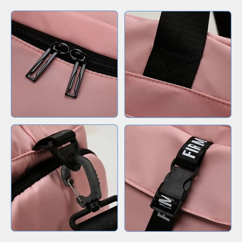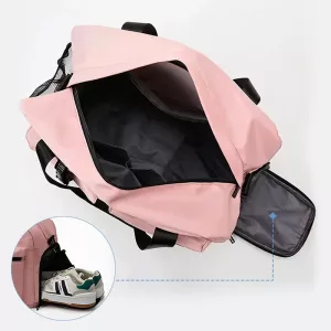 Habe diese Reisetasche fürs Schwimmen gekauft. Nasses Handtuch in ein Fach, trockene Kleidung in ein anderes. Selbst nach Regentagen wird innen nichts durchnässt oder muffig.