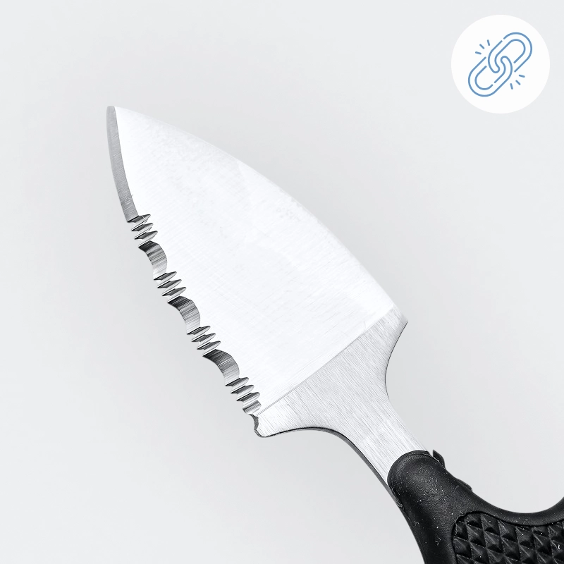 Ich habe diese Outdoorklinge fürs Trekking gekauft. Sie ist kompakt, aber robust, schneidet Gemüse und Wurst mühelos, und die Griffstruktur gibt mir Sicherheit auf nassem, steinigem Boden.