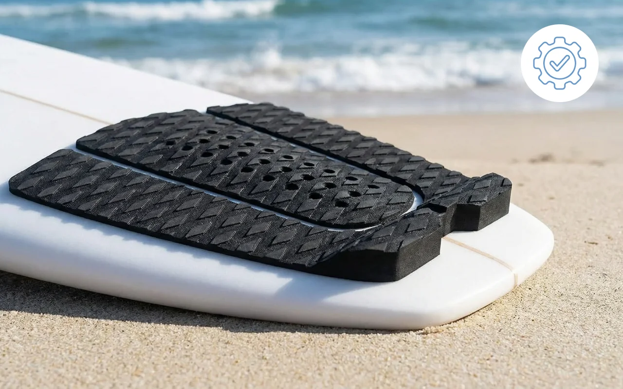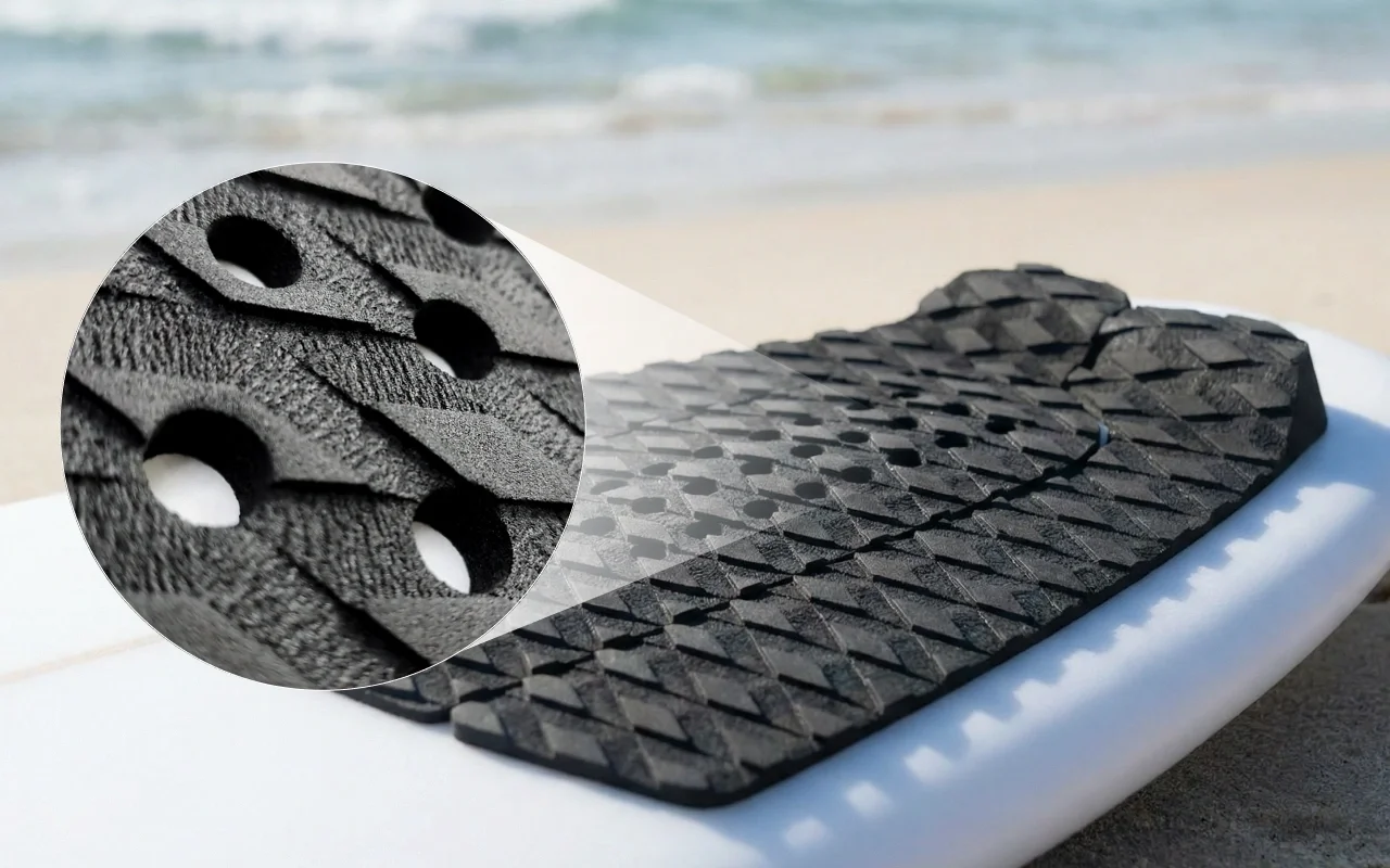 surfboard traction pad, surfboard deck grip, surf traction pad, tail pad surfboard, surf tail pad